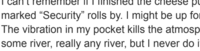 The vibration in my pocket kills the atmosphere. I fantasize about throwing my phone in a river, some river, really any river, but I never do it. I’m sure I’ll pluck up the courage someday, probably. I'd keep walking forever if it weren't so cold, and if a cigarette didn't sound so fucking good right now. I only smoke when I'm drunk or when I feel like it. I don't buy them myself.